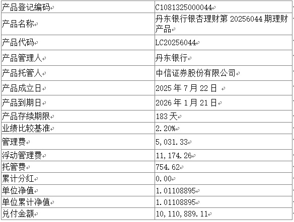 尊敬的客戶: 我行下列理財產品已于2026年1月21日進行到期清算兌付,根據與投資者的約定,現將到期情況進行公告,具體披露信息如下。